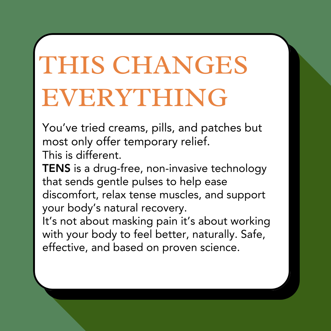 If you have lower back pain, sciatica, neck or shoulder tightness, knee pain, arthritis, muscle strains, or nerve discomfort, it’s proven that regular use of the TENS device can help relieve pain and improve mobility. Just a few minutes a day can make a noticeable difference in how you feel.