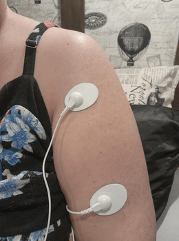 Melissa H.Verified BuyerExactly what I needed between PT sessionsI’ve been rehabbing a rotator cuff tear and needed something to help with the tightness and pain in my arm. I don’t like taking meds, so this was a great find.I use it on my upper arm, bicep and tricep mostly and it helps the muscles relax fast. Even saw some improvement in my range of motion. Instructions were a bit small, but I figured it out. Comes with plenty of pads and leads. Solid quality, worth it.